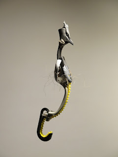 Toen ik nog op Burgwal 6 de kleine huiskamergalerie had parkeerde ik de reclamefiets op de hoek van de straat; een meisje op een fiets met twee honden achterop. De fiets waaide door flinke windstoten nog weleens om met als gevolg dat er stukken afgebroken waren. Op een gegeven moment was het geen reclame meer en hebben we de fiets gedemonteerd. De rechterhond is inmiddels, verwerkt in een kunstwerk, verkocht. Het linker hondje zat tot voor kort nog een tijdje achterop de 'nieuwe' reclamekar van ons museum op nummer 20.